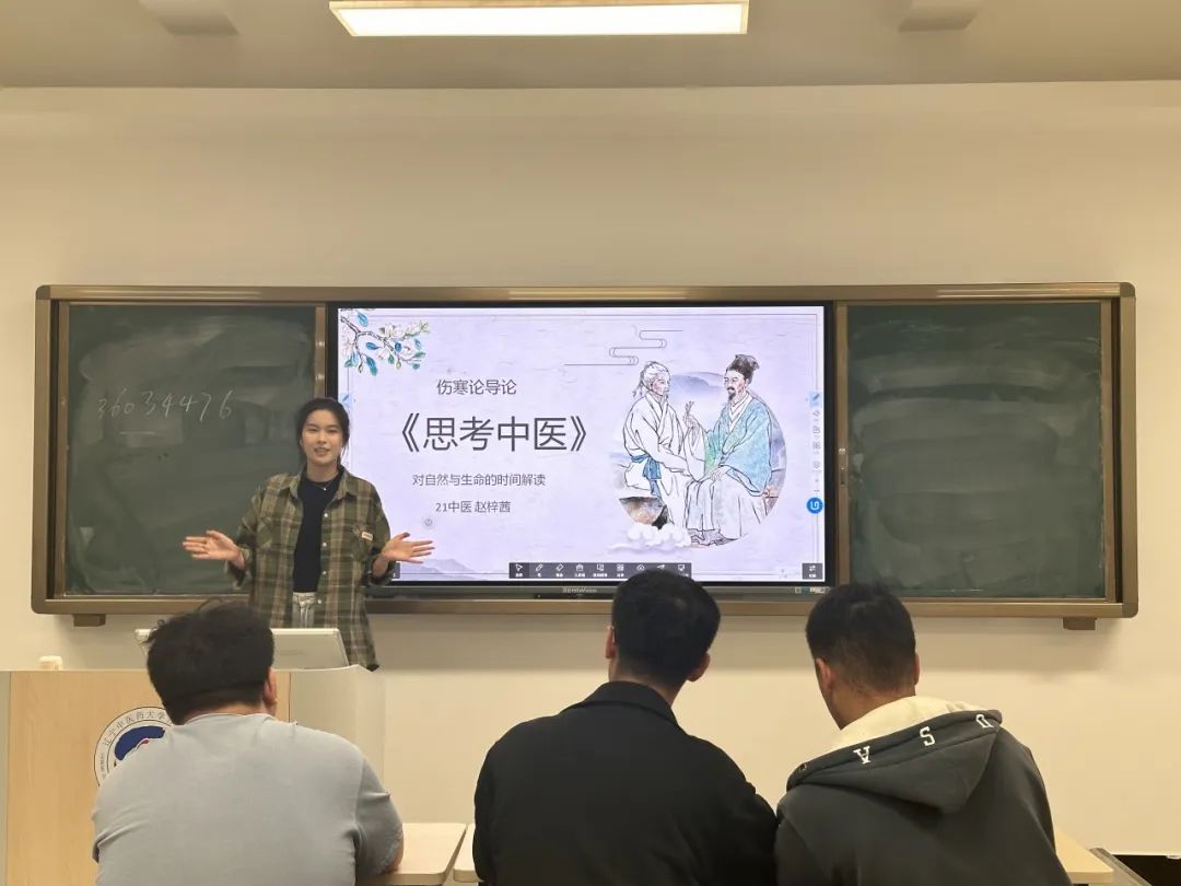 赵梓茜同学在分享的过程中结合本书向在场同学分析了中医的现状并提出了若干问题,如实习后产生了在临床实践中中医无处可施的迷茫临床效果不如意非中医问题而是理论滞后于临床等问题。同时也提出了解决方式,即我们应该坚持中医自信与文化自信,以中医理法方药为抓手,与现代临床实践相结合,深挖中医经典,砥砺前行。
